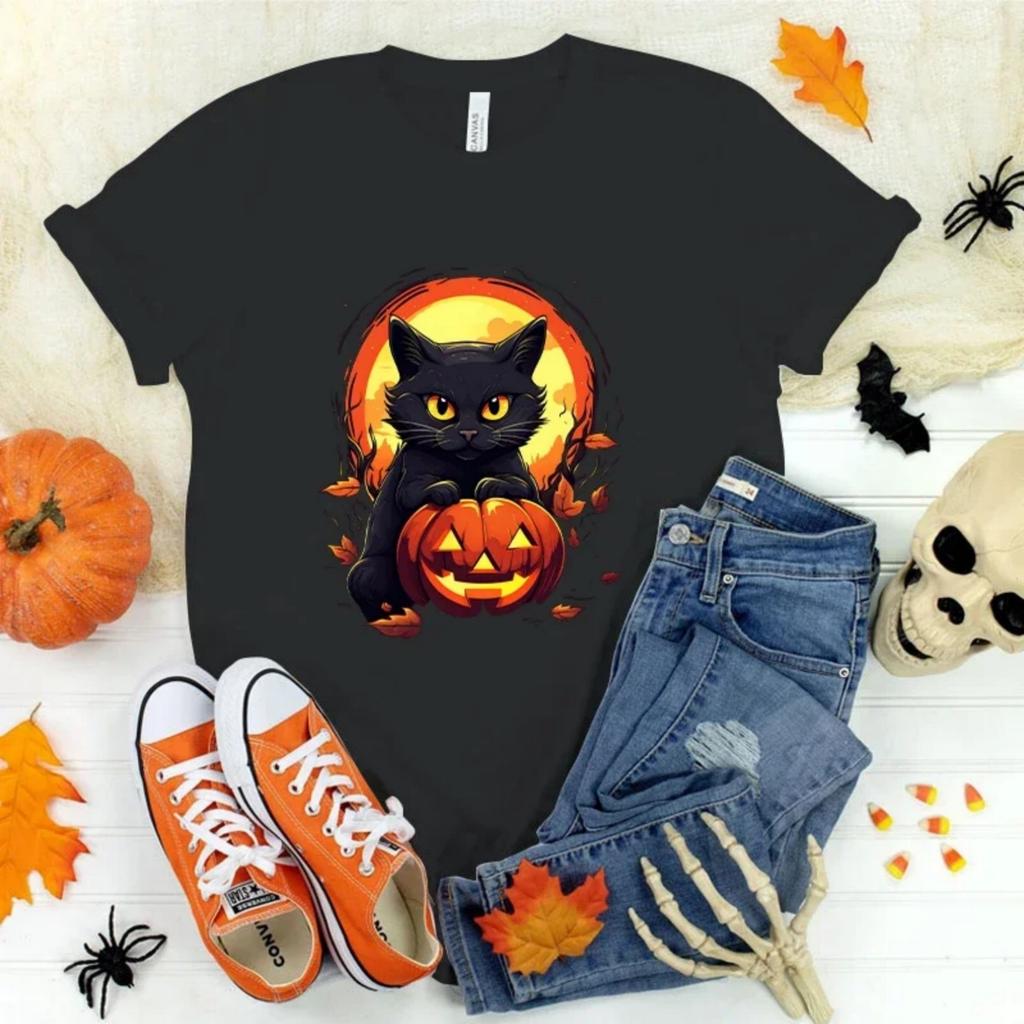 (Prémiové tričko)Halloween Kočka Dýně Potisk Tričko Cool Letní Ležérní Tričko