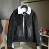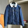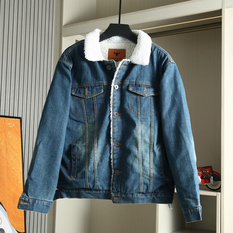 Winter Vintage Lamb Wool Lapel Denim Jacket for Men, Thickened Warm Workwear Style Washed Jacket Trendy