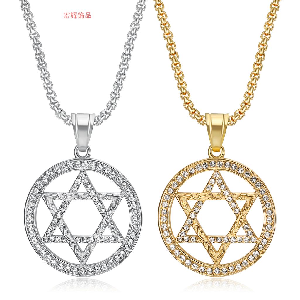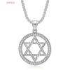 Hot Selling Hip Hop Jewelry Titanium Steel Gold-Plated Round Pendant Hexagram Necklace