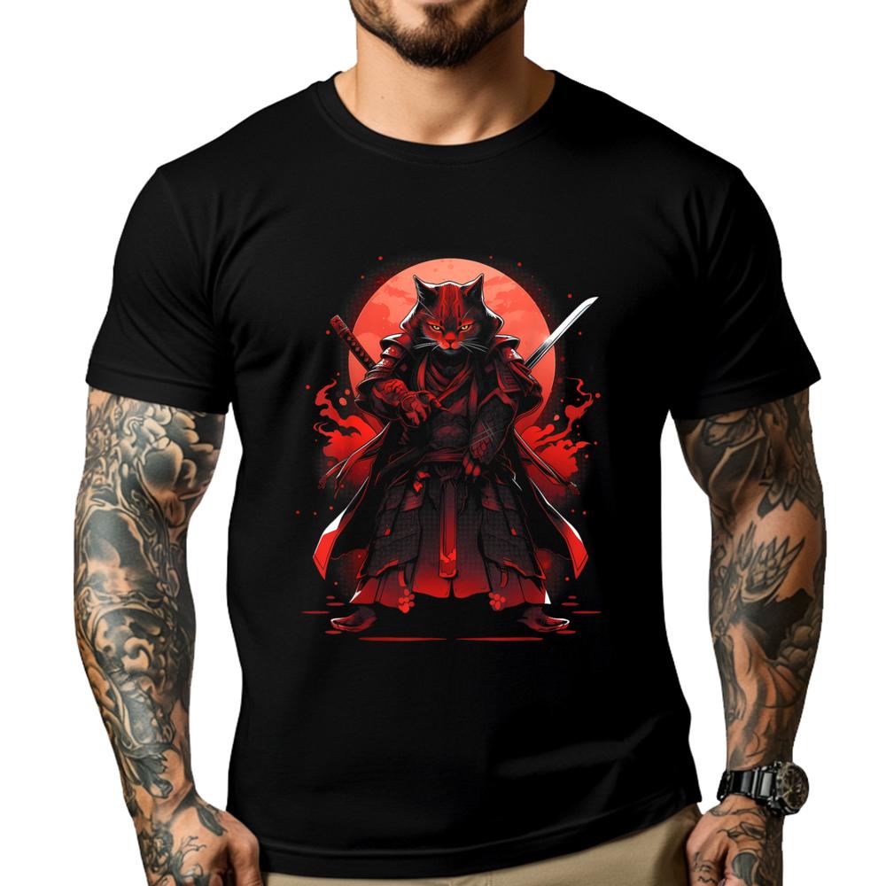 Cat Samurai Ninja Cat Samurai Art Ukiyo E Grey Shirt Graphic Tee Female Mens T Shirt Camisetas Hombre