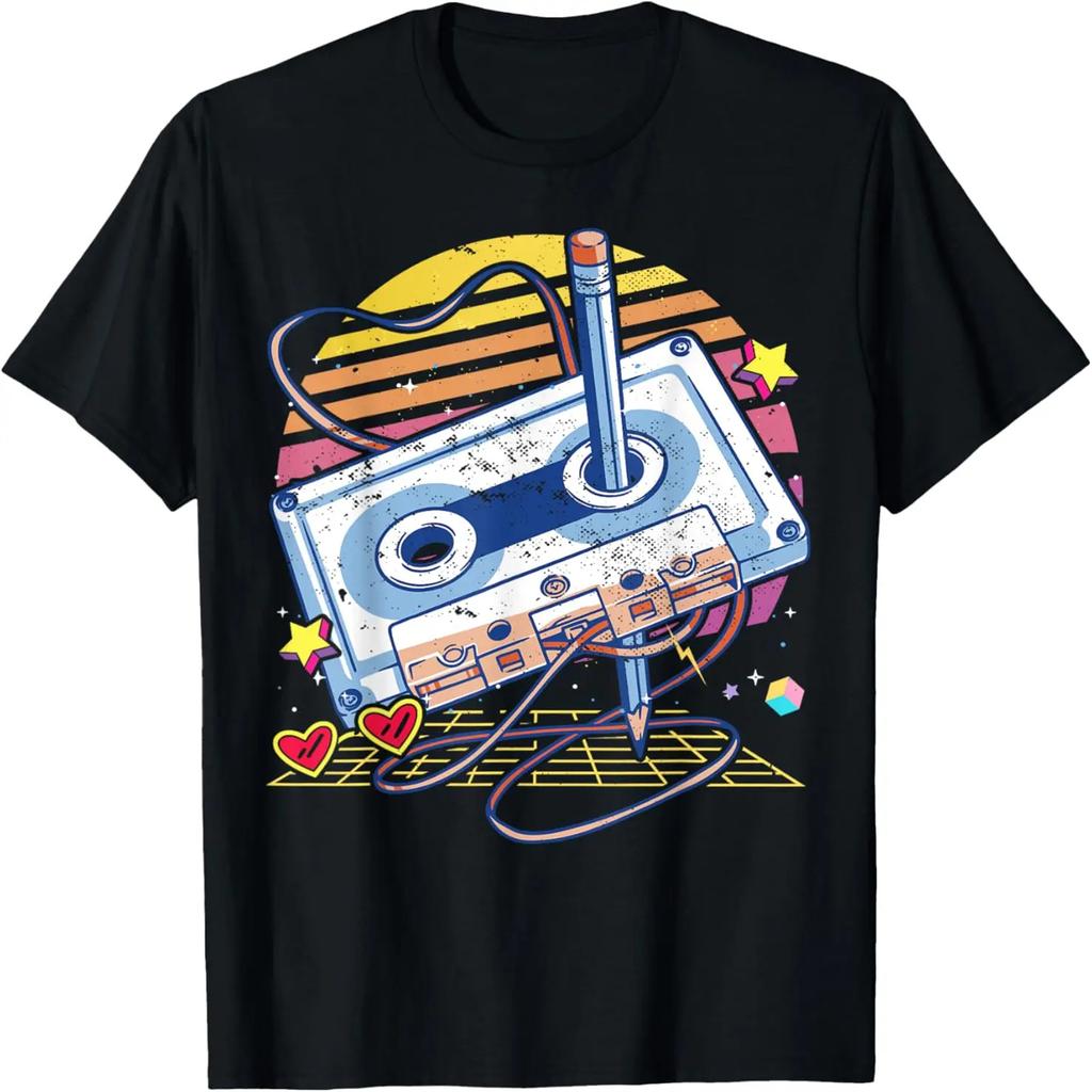 Párty kostým tričko vintage retro kazeta a tužka 80. a 90. léta