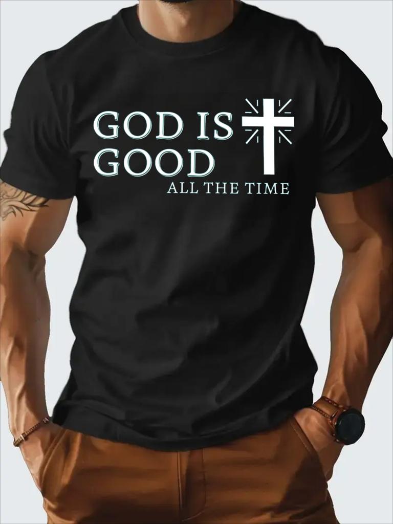 Mens Tshirt Minimalist Design Print 100 Cotton Mens Top God is Good All The Time Faith Print Short Sleeve TShirt