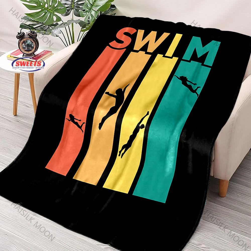 Swimming Sports Theme Blanket for Couch or Bed - 3D Decorative Blanket - Cozy Soft Lightweight Blankets Suitable for All Seasons