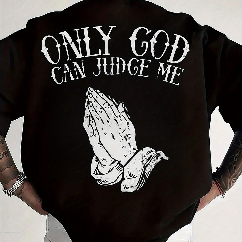 Mens summer 100 cotton fashionable casual sports loose only GOD CAN JUDGE ME printed round neck short sleeved Tshirt top
