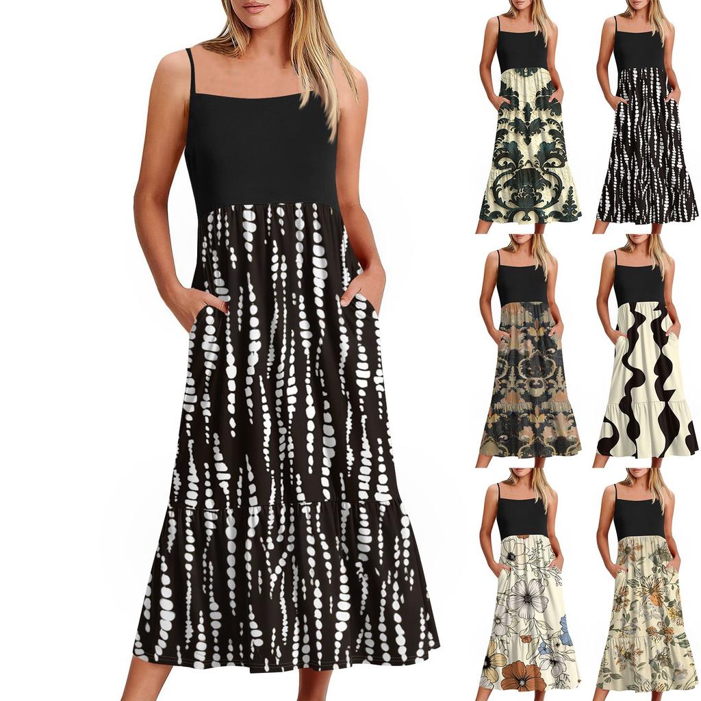 Women's Long Beach Casual Elegant Spaghetti Strap Maxi Dress Floral Low-key Flowing Bohemian Dress