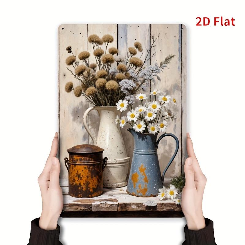 Vintage Floral Metal Wall Art Sign Rustic Iron Decorative Plaque with Daisies Vase Design Perfect for Home Garden Decor