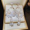 Holiday style diamond-set artificial crystal pearl flower silver needle earrings fashionable sweet and elegant temperament earrings