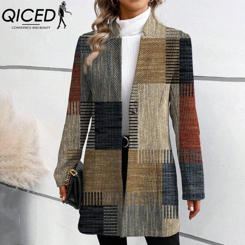 QICED Dámské vintage ležérní jednobarevné bundy a kabáty podzim zima s dlouhým rukávem