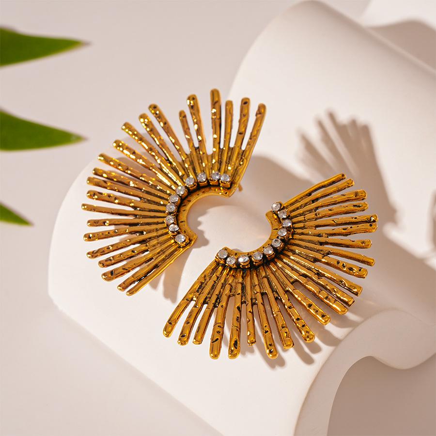 Old-fashioned metal feeling diamond-encrusted half-edge sunflower silver needle earrings temperament earrings