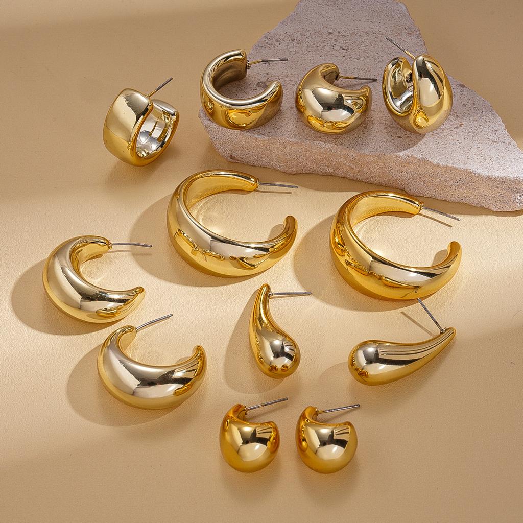Personalized metal sense geometric C-shaped water drop-shaped steel needle stud earrings fashion ins niche earrings