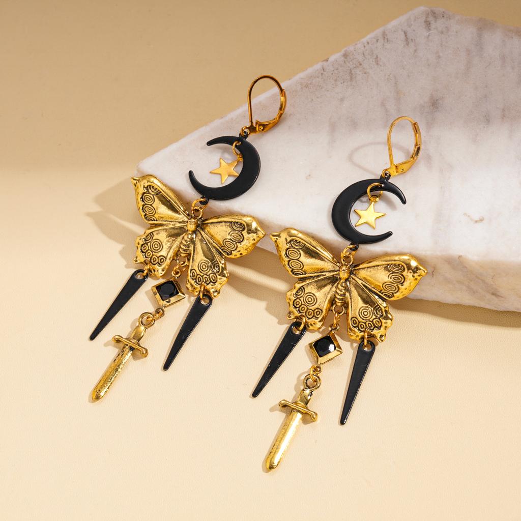 Metal Moon Star Butterfly Cross Tassel Ear Buckle Personality Niche Earrings