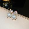 Wind zircon round square water drop imitation pearl silver needle earrings French earrings