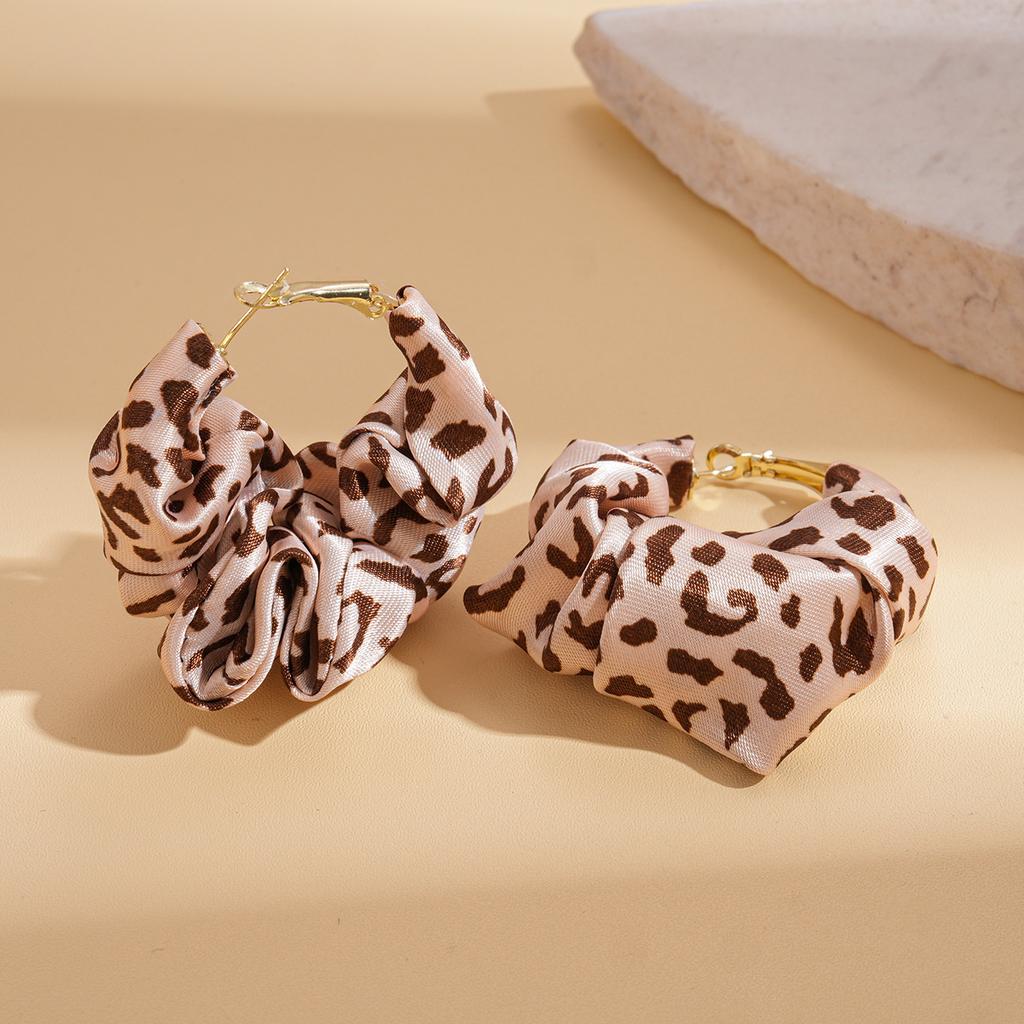 Fabric leopard print geometric round silver needle earrings autumn and winter earrings