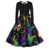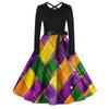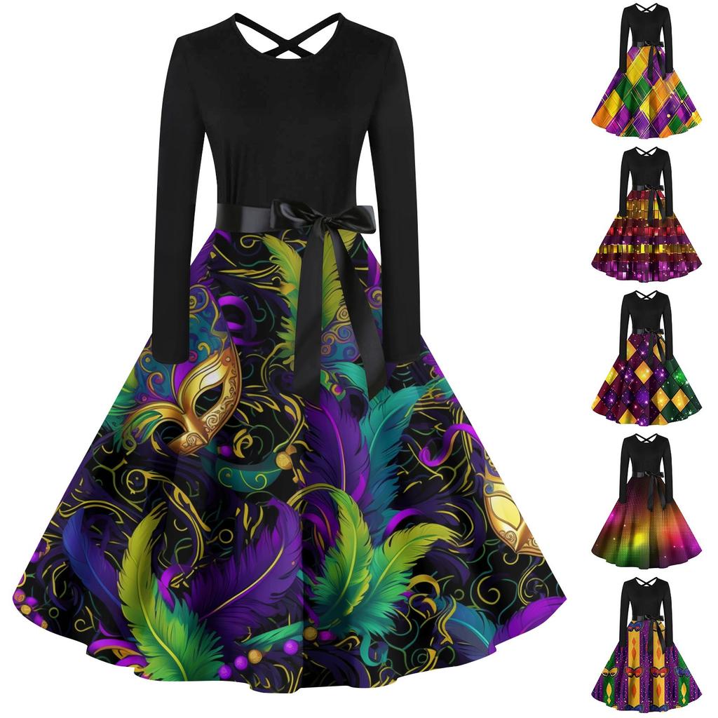 Women's Casual Print O-neck Pullover High Waist Long Sleeve Dress