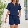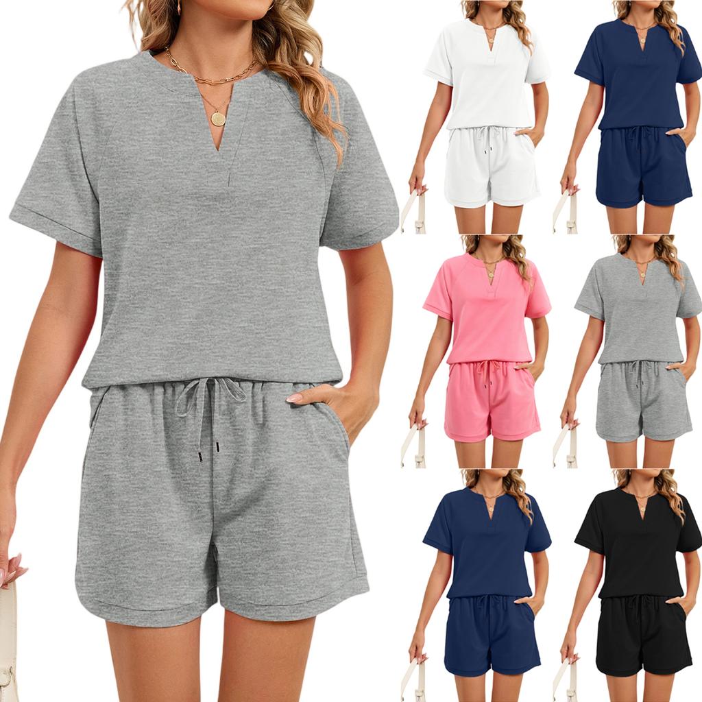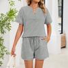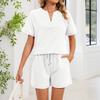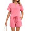 Women's Fall Two Piece Outfits Short Sleeve Tops Tee Shirts Wide Leg Shorts Sets