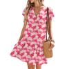 Women's Dresses Short Sleeve V-Neck Floral Printed Loose Casual Temperament Beach Dresses