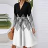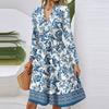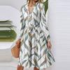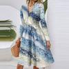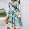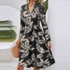 Women's Fashion Casual V-Neck Long Sleeve Waist Floral Print Midi Dress