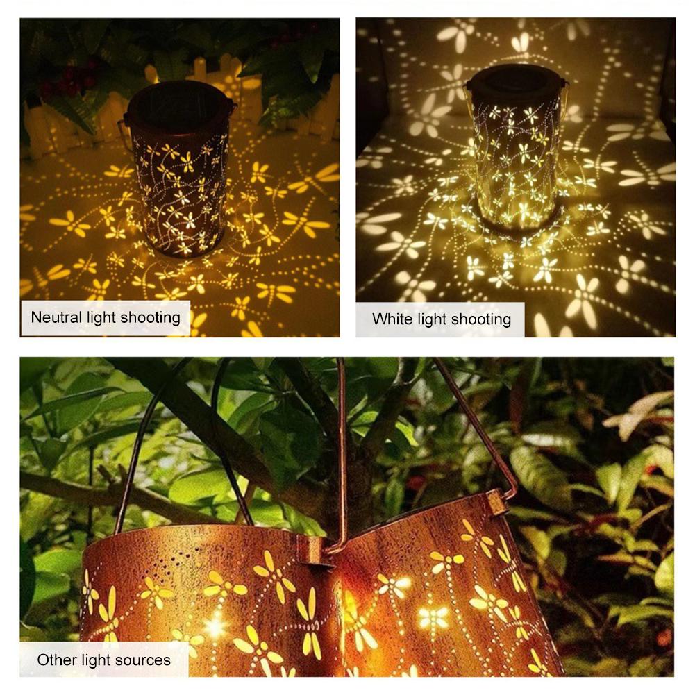 Solar Hanging Light Dragonfly Hollow Light IP65 Waterproof Solar Lantern Auto On/Off Decorative Solar Lights for Backyard Porch