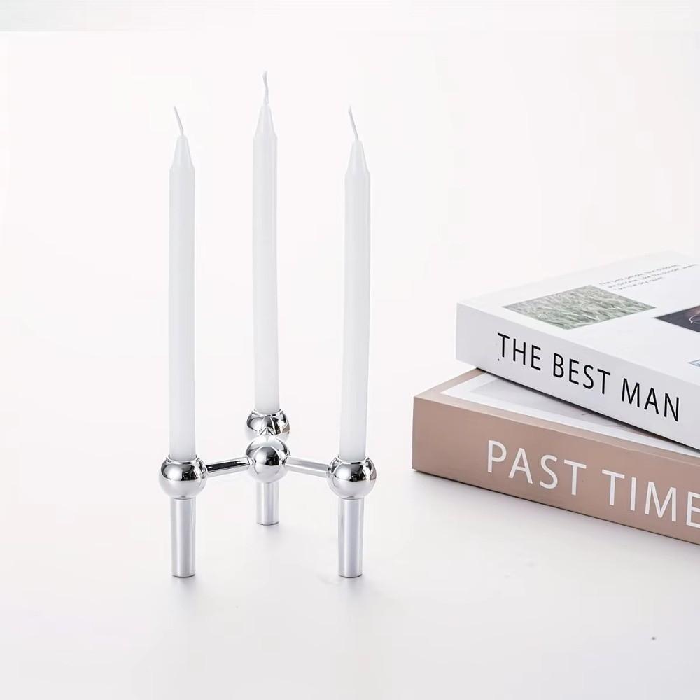 Kovový držák na svícen s molekulární strukturou, stříbrný trojúhelníkový svícen, domácí dekorace, svícen, dárek