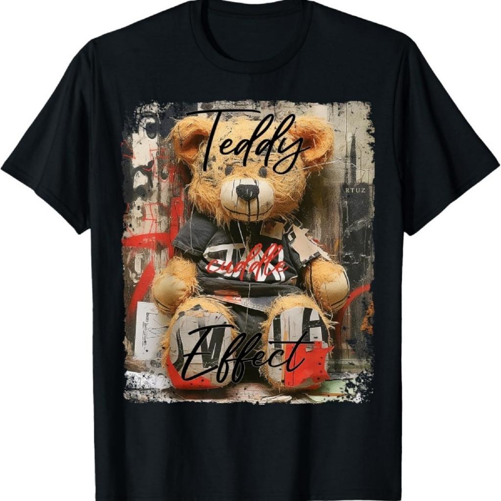 Roztomilé graffiti s medvídkem, vintage tričko s medvídkem, Malé, Černé
