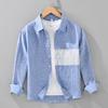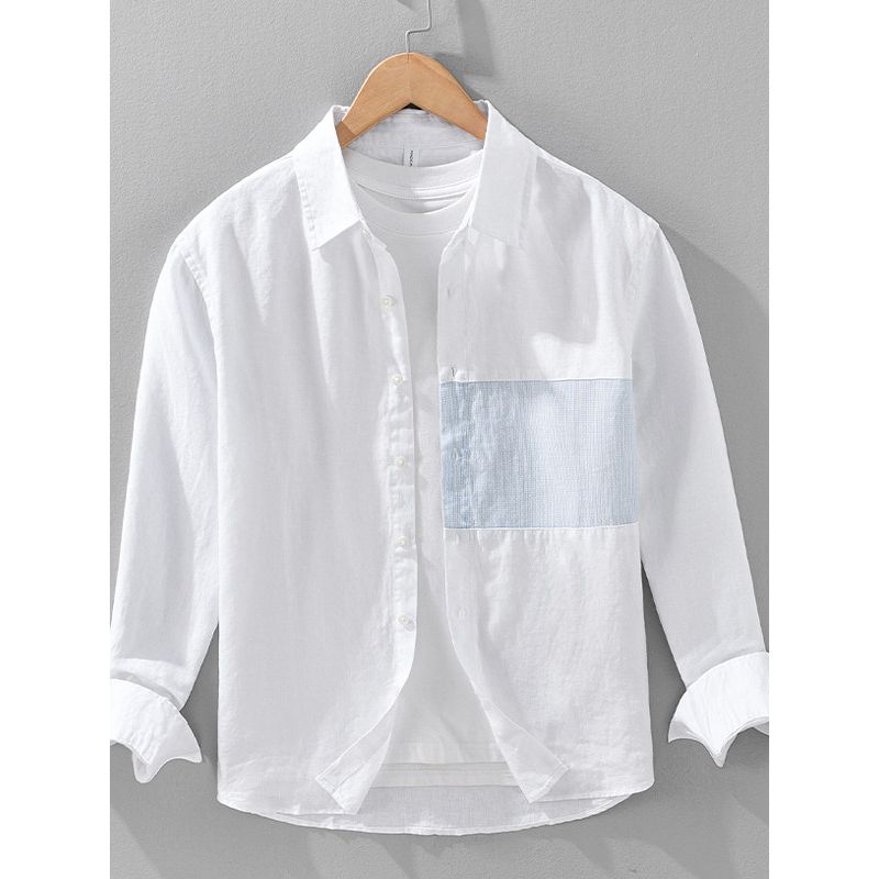Foreign Trade Surplus Pure Linen Patchwork Long-Sleeve Shirt for Men, New Spring/Autumn Trendy Casual Retro Design Shirt