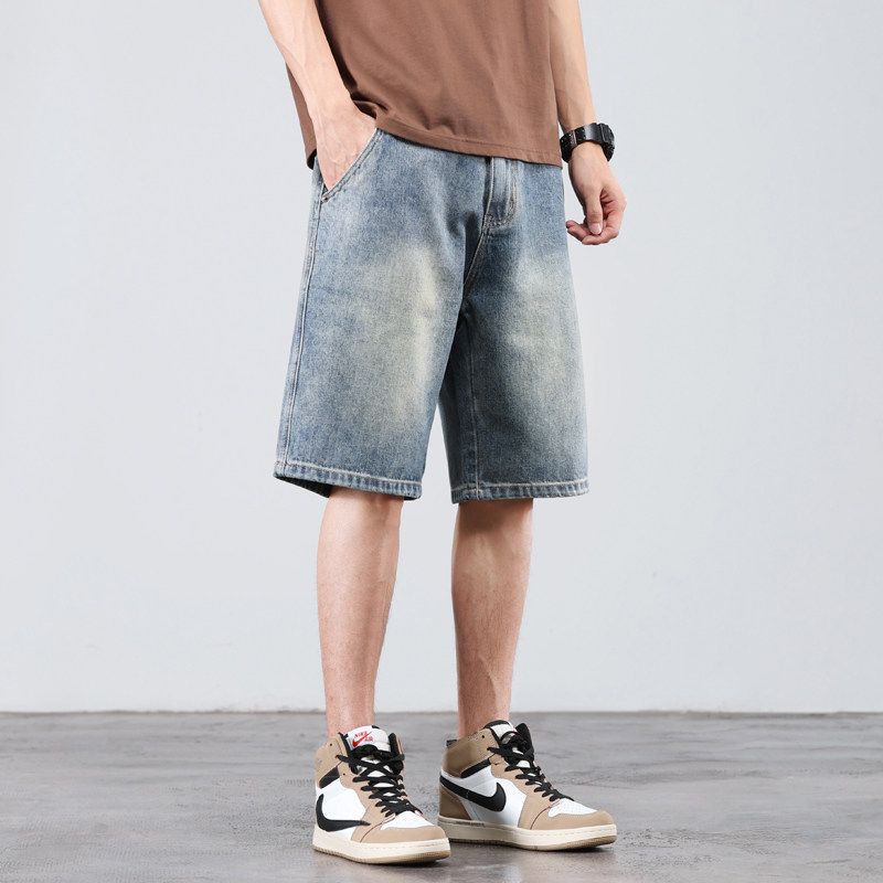 Clearance Vintage Denim Shorts for Men, Summer Thin Loose Straight Five-Point Pants, Trendy Casual Mid-Length Shorts
