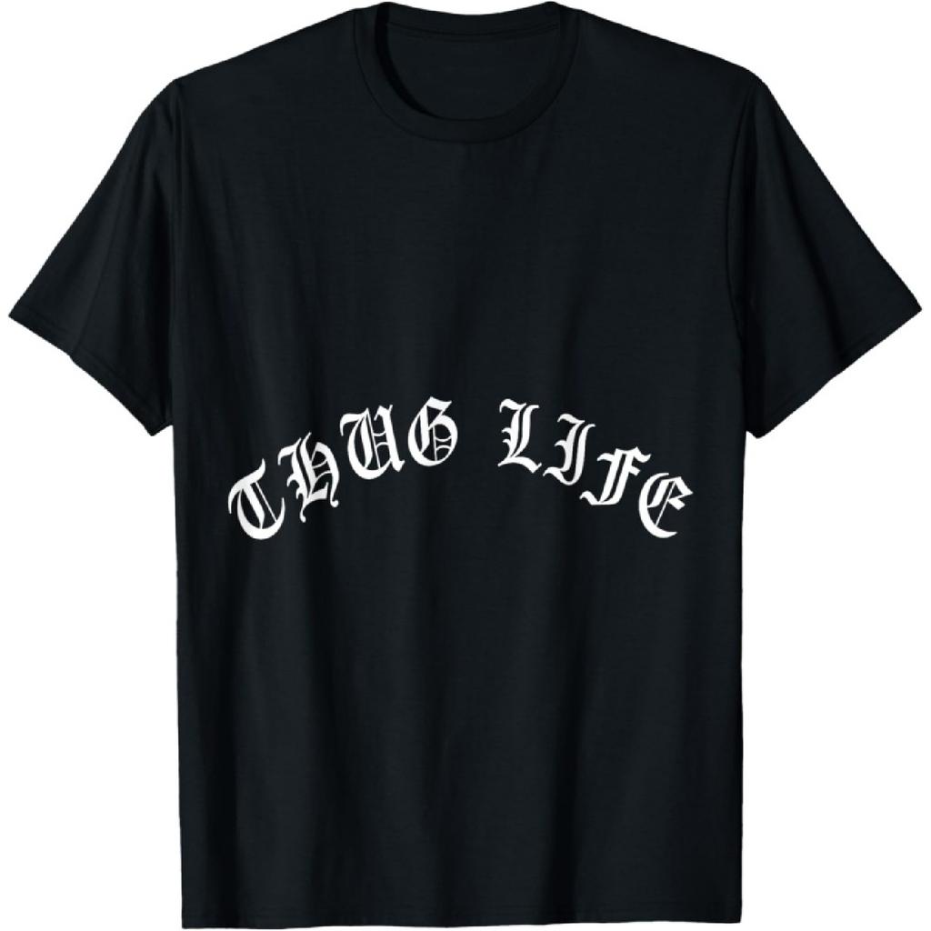 Thug-Life T-Shirt - Women's Black Short Sleeve Classic Fit T-Shirt - Rap-Music Themed T-Shirt - Size Small