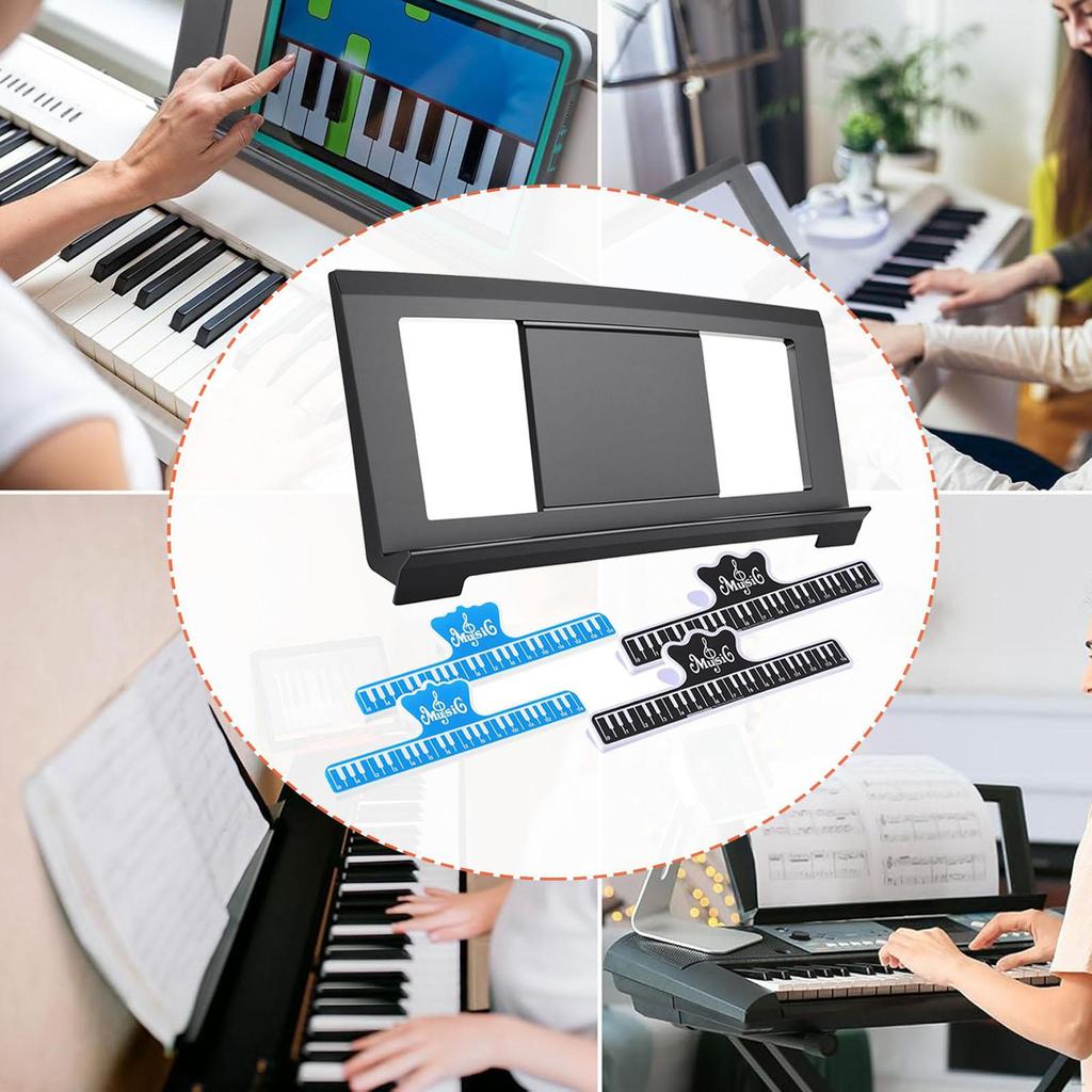 - 【Bezpečné hudební klipy】: Hudební stojánek pro elektronické klávesy obsahuje čtyři klipy na noty, které bezpečně drží noty na místě, zabraňují nechtěnému otáčení nebo sklouzávání stránek, což umožňuje hudebníkům plně se soustředit na své vystoupení bez rušení.