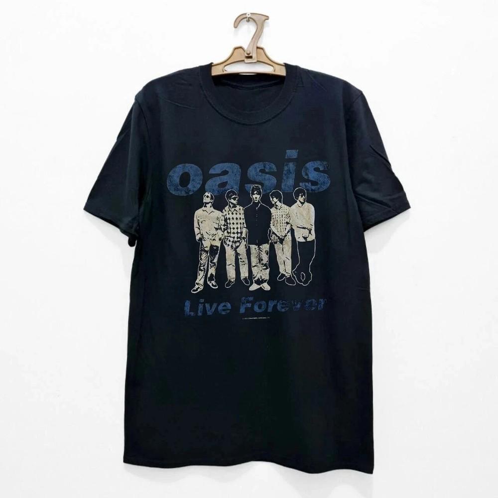 Oasis Live Forever Tričko Vintage Styl Černá Bavlna Unisex Reprint S-4XL Unisex Tričko
