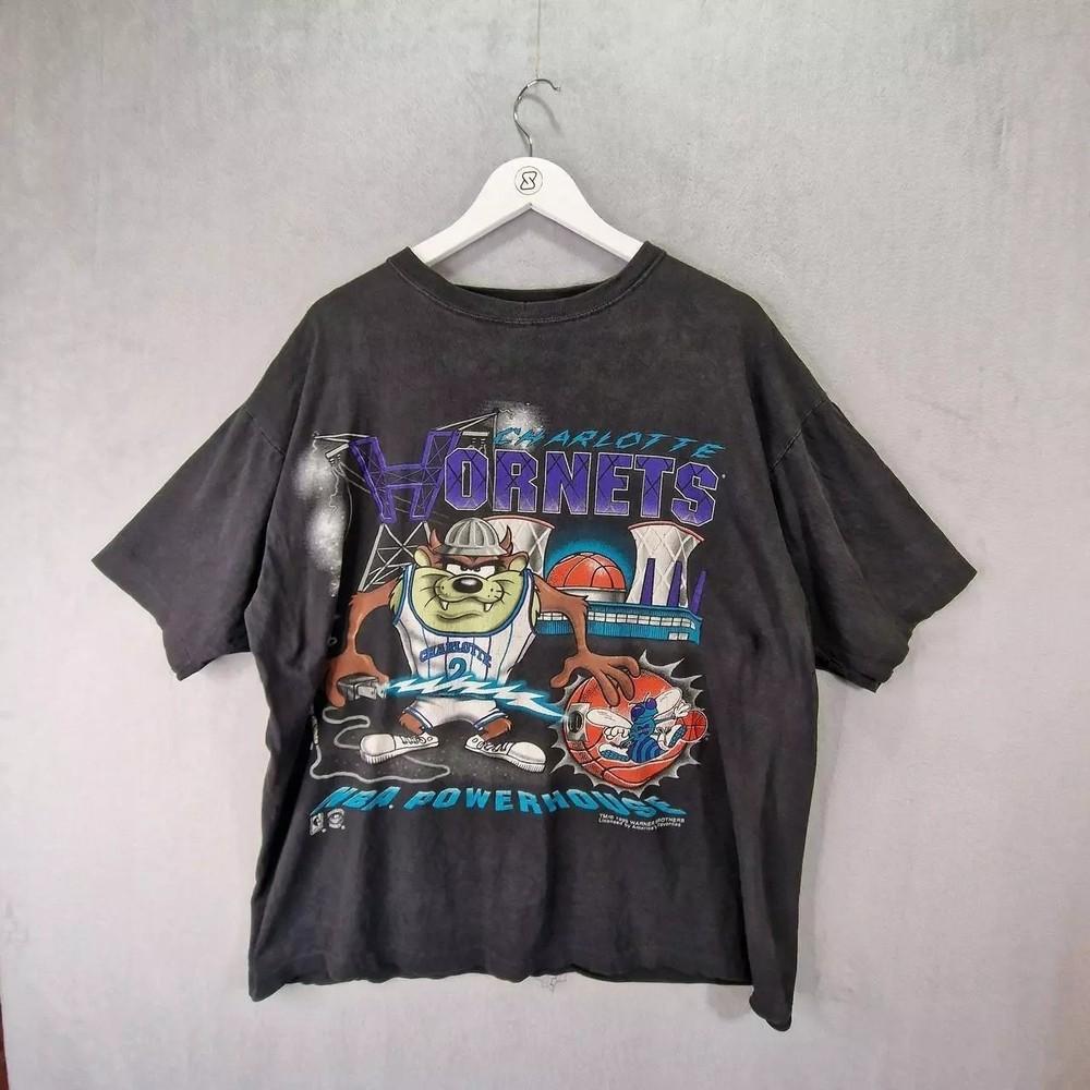 Vzácné tričko Looney Tunes Taz Charlotte Hornets s krátkým rukávem 1995 Unisex tričko