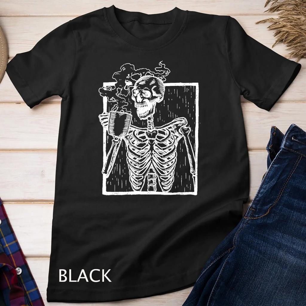 Distressed Skeleton Vintage Smiling Skull drinking Coffee T Shirt