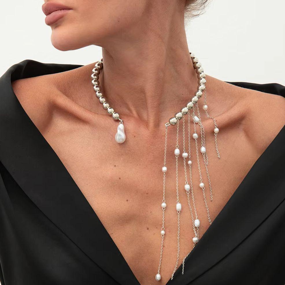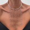 Salircon Nádherný Otevřený Choker Náhrdelník s Třásněmi z Imitace Perel Dámský Módní Dlouhý Třásně CCB Korálky Řetízek na Klíční Kost Šperky