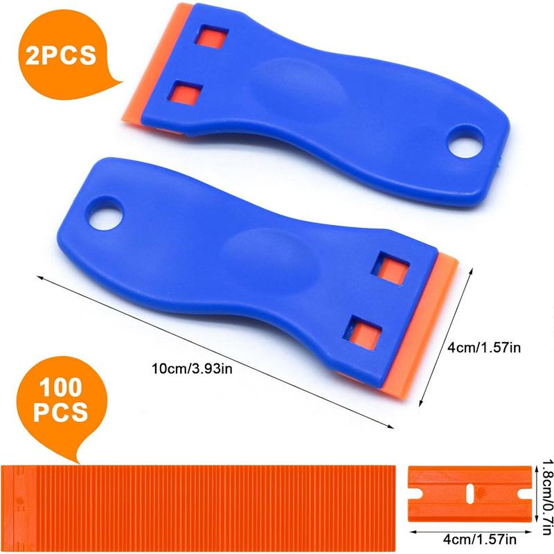 100 Pcs Two Cutting Plastic Razor Blade Scraper Non-Scratch Scraper Tool Kits for Cleaning Labels Glue Car Window Sticky Remover
