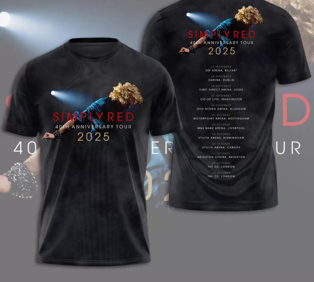 Simply Red 40. výroční turné 2025 Pánská velikost S-5XL CG2358 Unisex tričko
