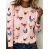 Women's Casual Short Sleeve T-Shirt - Colorful Cartoon Chick Print Round Neck Regular Machine Washable Top for All Seasons