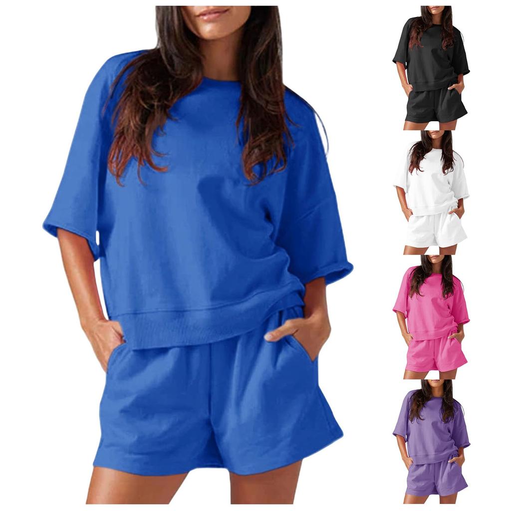 Women's Loose And Fashionable Casual Short Sleeved Shorts Two-piece Set