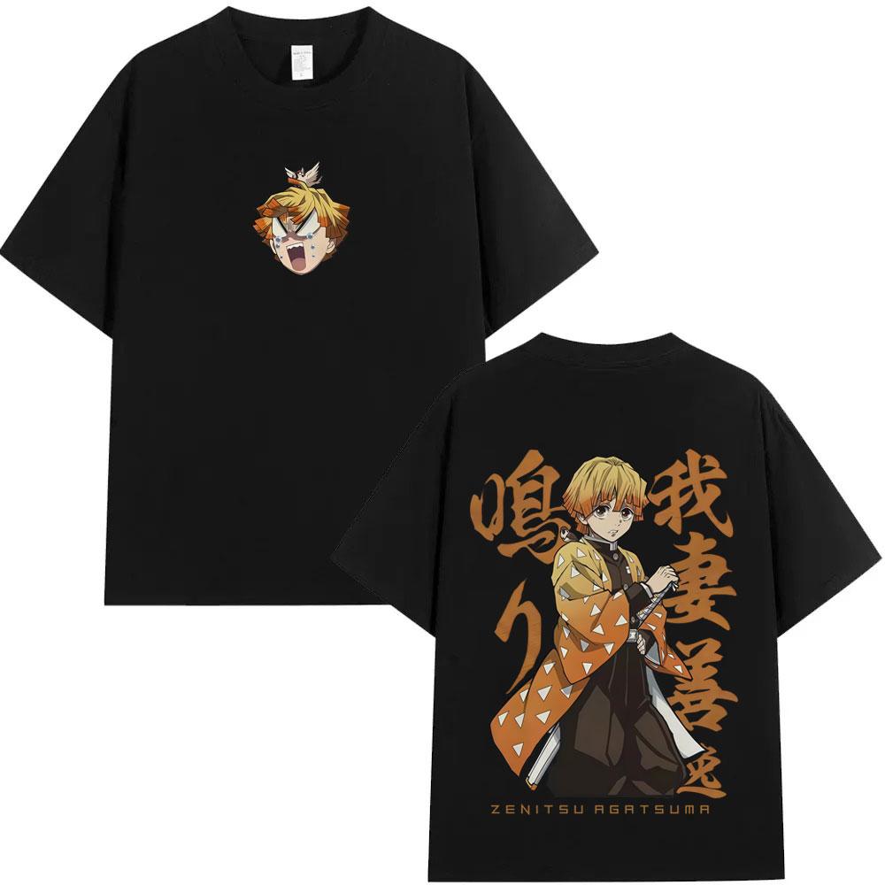 Anime Demon Slayer Agatsuma Zenitsu Graphic T Shirt Men Women Clothing Fashion Oversized Short Sleeve Tshirt Cartoon Streetwear