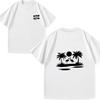 Mens Tshirt Black Tropical Palm Trees Sunset Print Casual Summer Beach Wear