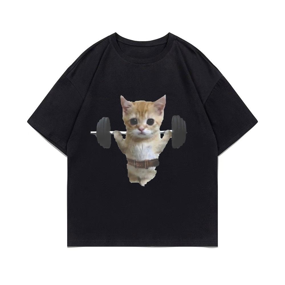 Vtipné trička s potiskem kočky do posilovny pro muže a ženy, roztomilé fitness tričko s pumpou, oversized unisex prodyšné ležérní top