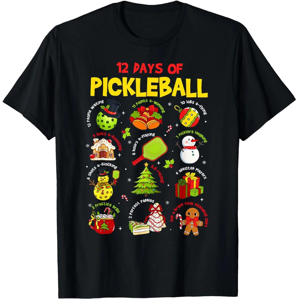12 Days of Pickleball Christmas Players Season Sport Lover T Shirts Men Streetwear Tee Shirt Short Sleeve Unisex Loose Clothing