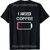 I Need Coffee Funny Cups Battery Beans Coffee T Shirts Men Cotton Humor Streetwear Tee Shirt Short Sleeve Unisex Loose Clothing