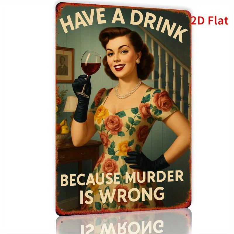 Vintage Metal Wall Sign with Humorous Have a Drink Because Murder Is Wrong Quote Retro Iron Art for Home Garage