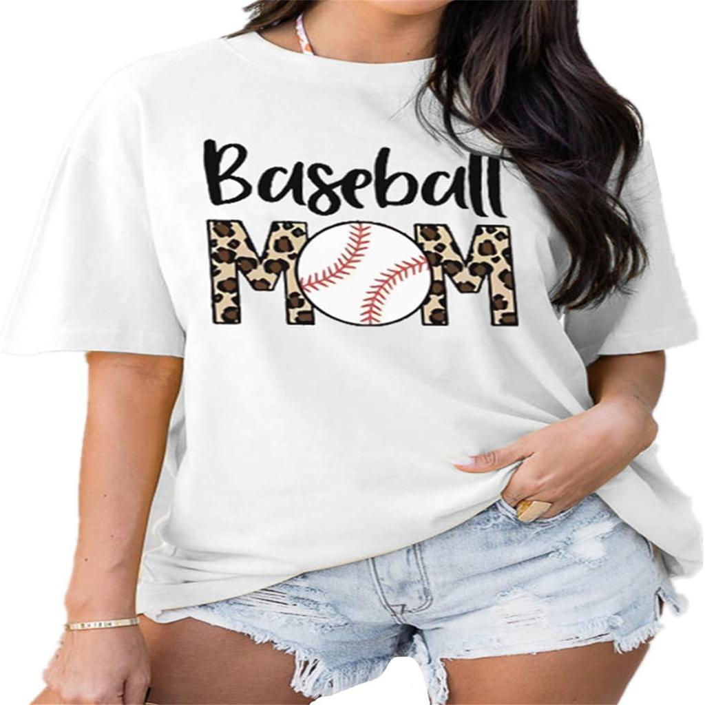 Baseball Mom Shirt Cotton Summer Tops for Women Trendy Crewneck Short Sleeve Tshirts Casual Graphic Blouse Tees