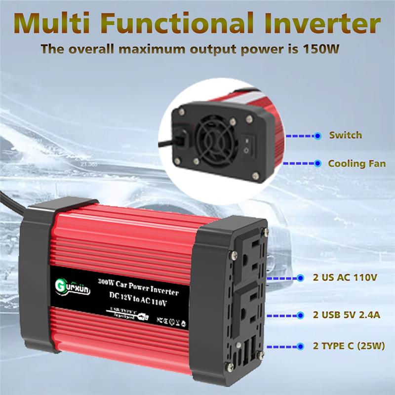 300W 12V To AC 110V 60Hz Car Inverter Car Power Tranfermer Voltage Portable Converter With LED Display US Plug