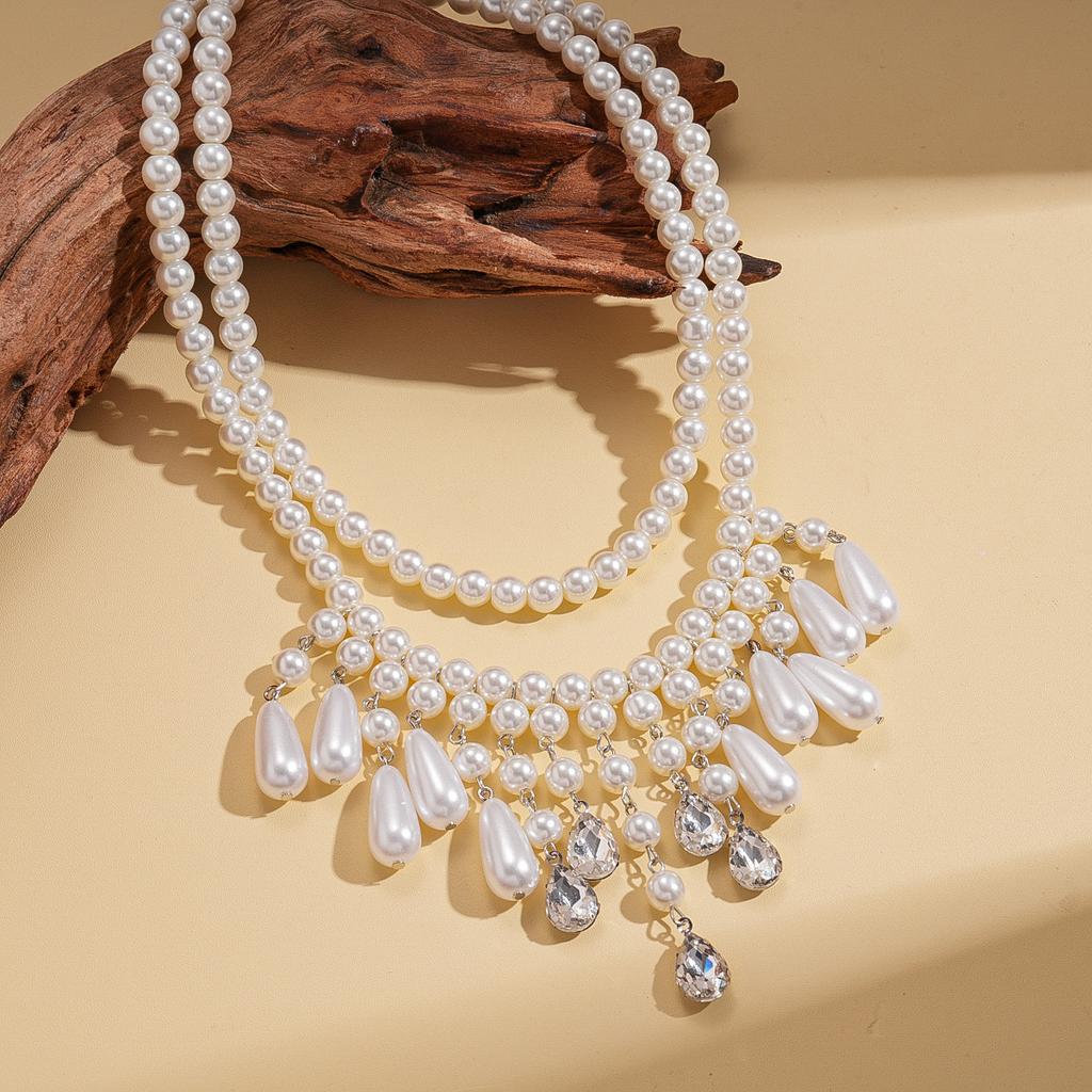 Diamond-encrusted imitation pearl beaded water drop fringed pendant double sweater chain baroque necklace