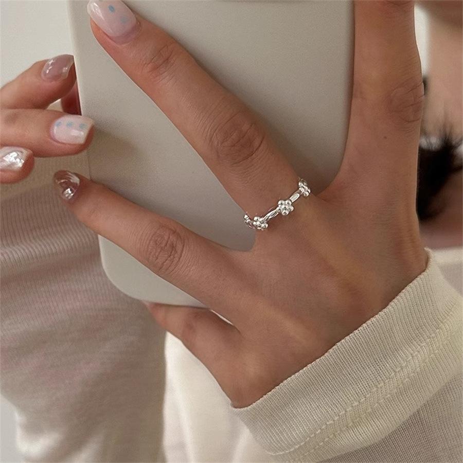 Japan and Korea Small Fresh Flower Ring's Sterling Silver Bow Plain Ring Index Finger Ring Simple Open Ring