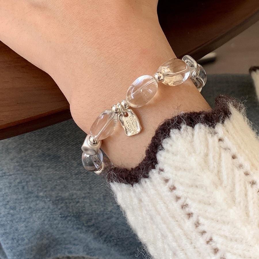 Ice cube candy tag, white crystal square bracelet, summer niche design bracelet, bracelet, versatile jewelry.