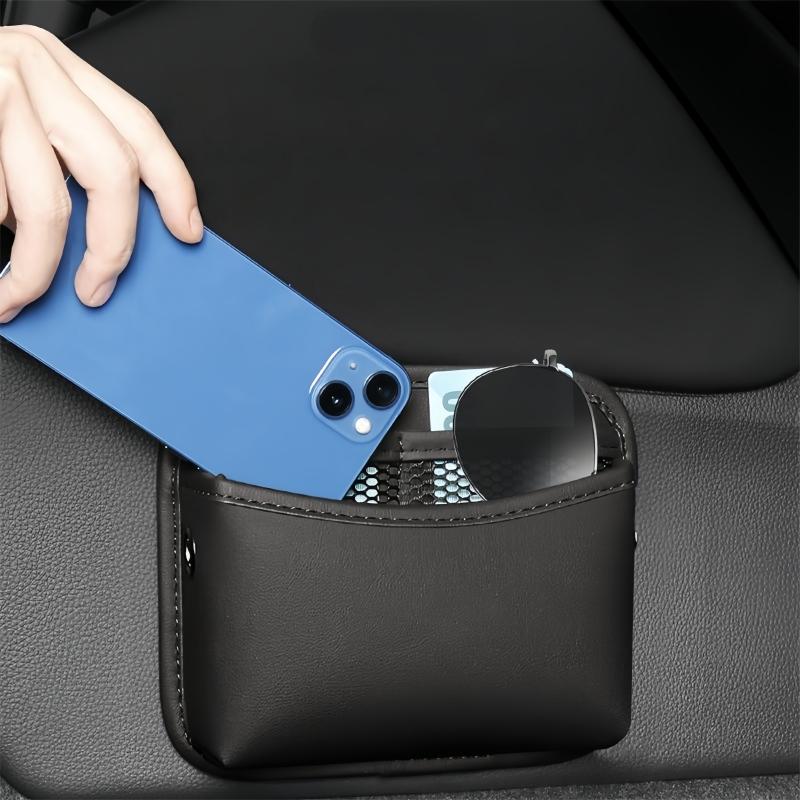 Faux Leather Car Phone Holder, Multifunctional Adhesive Dashboard Storage Bag, Universal Vehicle Interior Accessory Organizer