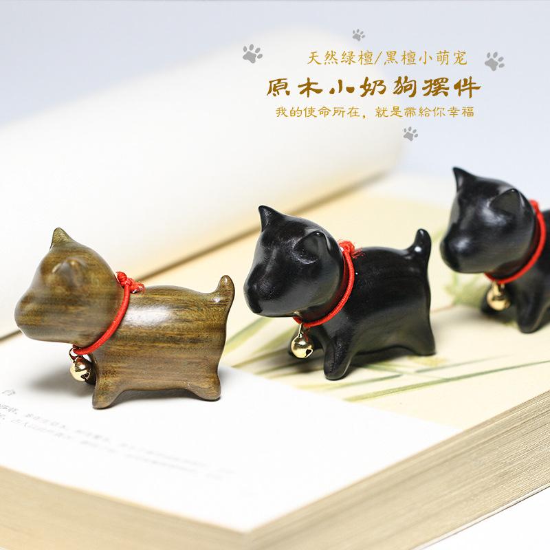 Miniature Figurine Lucky Cat Ornaments Sandalwood Carving Cute Slanted Head Cat Dog Crafts Home Decoration Gift Event Souvenirs