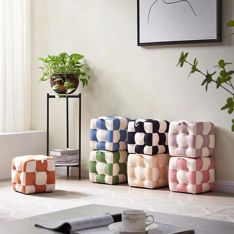 Checkerboard Hallway Ottoman Living Room and Children's Stool with High Elastic Sponge Step Velvet Fabric Pouffe with Storage